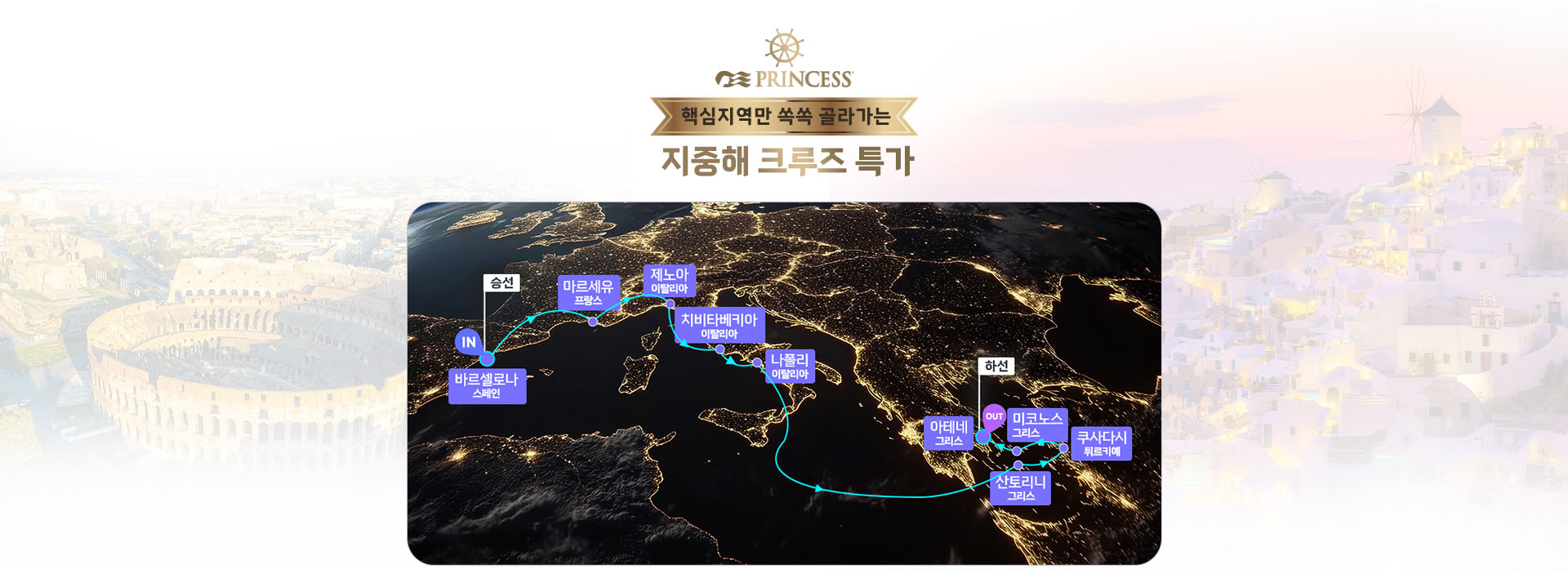 [특가일정, 대형선박, 조기예약 발코니UP] 지중해 일주 13일